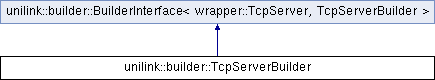 Implements unilink::builder::BuilderInterface< wrapper::TcpServer, TcpServerBuilder >.